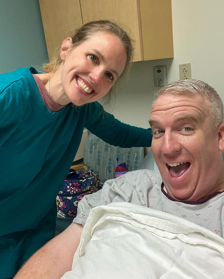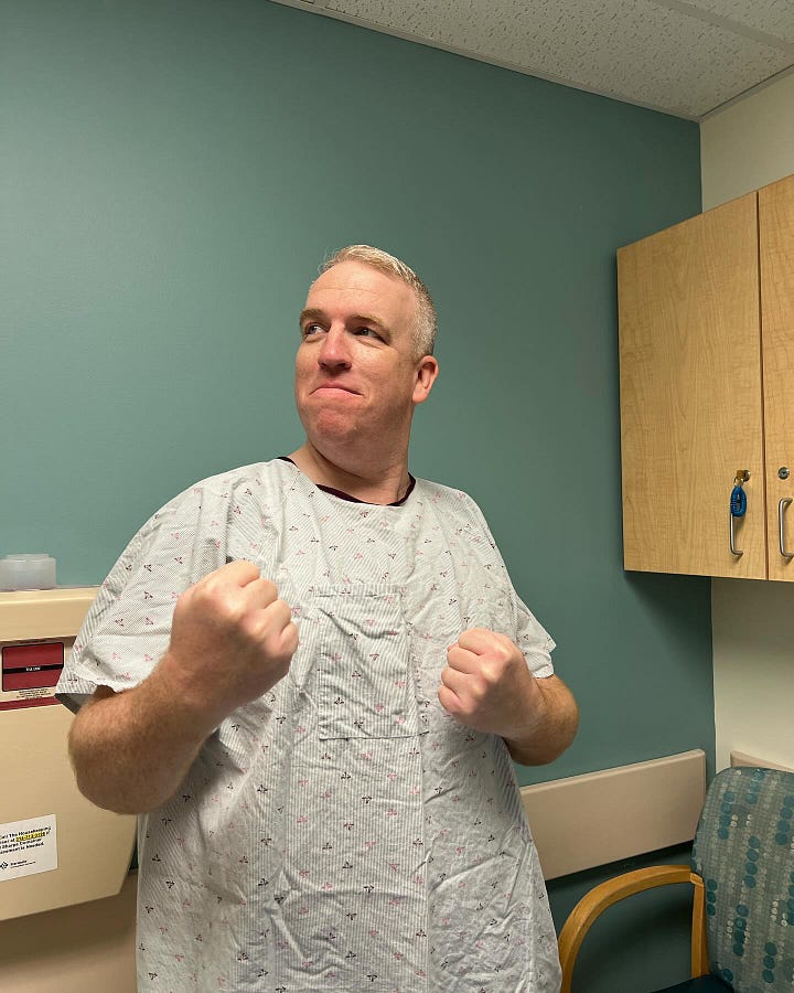 On Wednesday morning, May 29, 2024, I was taken from my hospital room to the OR pre-operative area. I signed more forms. More IV’s were placed. My abdomen was shaved to prepare me for the surgery. Beth and my parents accompanied me to this point. There was still a lot of laughter and joy in these moments. This changed when they were ready to wheel me out of the room and down the hall into the operating room.